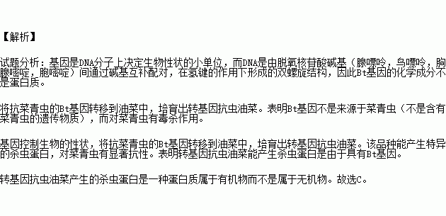 ② Bt基因含有抗菜青蟲的遺傳物質(zhì)