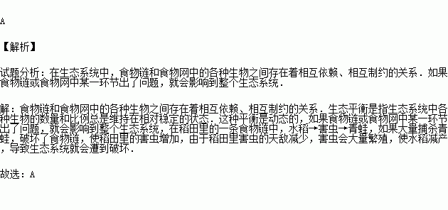 江南某地區(qū)歷來是糧食高產(chǎn)區(qū).但近十幾年來,有人為了賺取小利二大量捕殺青蛙,致使該地區(qū)水稻產(chǎn)量大幅度下降.造成水稻減產(chǎn)的主要原因是這個生態(tài)系統(tǒng)中( )