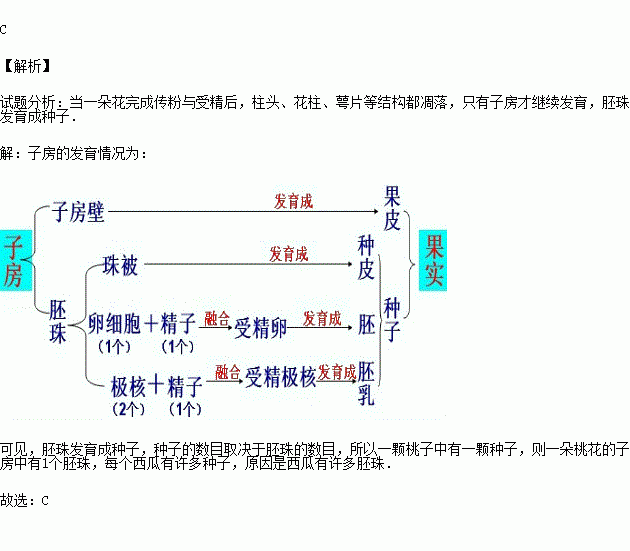 我們吃西瓜時發(fā)現(xiàn)每個西瓜有許多種子,每個桃子里卻只有一粒種子,出現(xiàn)這種現(xiàn)象的原因是西瓜( )