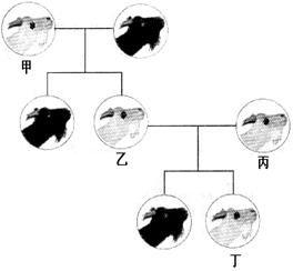(2)乙白毛羊與丙白毛羊通過有性生殖產(chǎn)生的后代中出現(xiàn)了黑毛羊,這種現(xiàn)象在遺傳學(xué)上稱為 。根據(jù)以上毛色在親子代的表現(xiàn)規(guī)律可以判斷 是隱性性狀。若用A表示顯性基因,a表示隱性基因,則子代黑毛羊的基因組成是 ,甲白毛羊的基因組成是 。