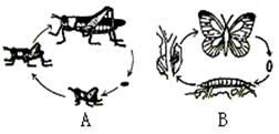 右圖是兩種昆蟲的發(fā)育過程,對其有關敘述錯誤的是