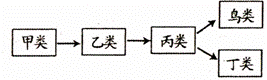 | C. | 丁類是由古代丙類進(jìn)化來(lái)的 | D. | 鳥(niǎo)類最高等,因?yàn)榭梢燥w行 |