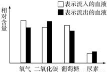 如圖所示的是進入和離開身體某器官的血液內四種物質的相對含量,該器官是( )