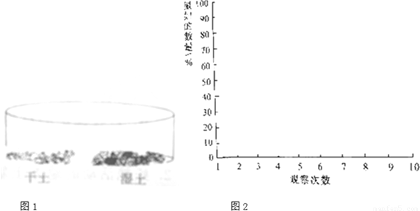 | 觀察次數(shù) | 濕土中鼠婦的個數(shù) | 干土中鼠婦的個數(shù) | ||