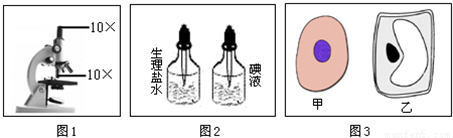 (3)該組同學(xué)觀察到的細(xì)胞結(jié)構(gòu)與圖3中的______(填“甲”或“乙”)結(jié)構(gòu)相同.判斷依據(jù)是“甲”不具有______.