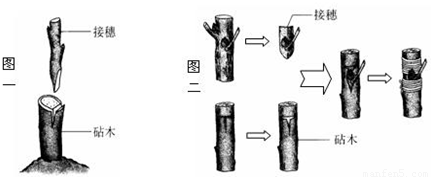 ②兩種嫁接方式的不同在于接穗不同,圖一是用______做接穗,圖二是用______做接穗.