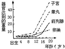 (1)從圖中可以看出,在童年期,性器官的發(fā)育特點是