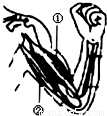 (2)該圖表示人體屈肘動作,①處于