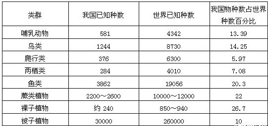 (1)我國哪一類生物在世界上占有的百分比最高?______.