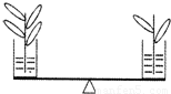 如圖所示,天平兩端托盤上的盛水燒杯內(nèi)各插有1根樹枝,且兩根樹枝的樹葉一多一少,開始時(shí)天平兩端平衡.現(xiàn)將此裝置移至光下照射一段時(shí)間后,發(fā)現(xiàn)天平左側(cè)上升.產(chǎn)生此現(xiàn)象的原因主要是植物的( )