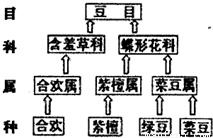 下面是豆目部分植物分類圖解,下列相關(guān)敘述,不正確的是( )