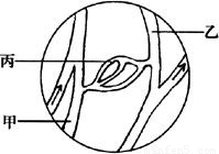如圖是某同學(xué)在顯微鏡下觀察到的魚尾鰭內(nèi)的血液流動情況,據(jù)圖血液由乙→丙→甲,可以判斷甲、乙、丙三種血管分別是( )