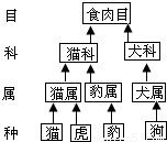 試觀察右側(cè)的食肉目部分動物的分類圖解,請分析下列說法不正確的是( )