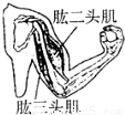 當(dāng)你用手將食物放入嘴里時,上臂肌肉所處的狀態(tài)(如圖)是( )