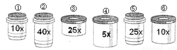 某同學使用的顯微鏡有如下一些鏡頭可供選擇(見下圖),要使被觀察的物體放大50倍,應選擇的鏡頭為