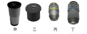 在一臺光學(xué)顯微鏡的鏡頭盒里有4個鏡頭(如下圖所示),若要使視野中看到的細(xì)胞最大,應(yīng)選用哪一組鏡頭 ( )