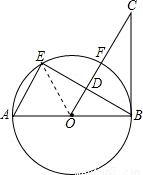 【答案】分析:AB是圓的直徑,我們可得出∠E為直角,BC切圓于B點(diǎn),那么CB⊥AB,由此我們就得出了∠E=∠OBC=90°,D為弦BE的中點(diǎn),根據(jù)垂徑定理我們不難得出,弧EF=弧BF,又有弧AE=弧EF,那么弧AE=弧EF=弧BF,由此我們可得出∠ABE=30°以及∠BOC=∠A,在Rt△ABE中,AE=AB=OB,這樣就達(dá)到了全等三角形判定里的角角邊的條件.
