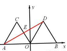 如圖,在平面直角坐標(biāo)系xOy中,點(diǎn)A的坐標(biāo)為(-2,0),等邊三角形AOC經(jīng)過(guò)平移或軸對(duì)稱或旋轉(zhuǎn)對(duì)稱都可以得到△OBD。
