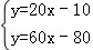 代入得b2=﹣80∴y=60x﹣80