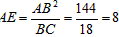 | (2)∵AD//BC,AB=CD, ∴AB=CD=12, ∵AB2=AE·BC, ∴ ∵AD//BC, ∴△EFA∽△FBC, ∴ ∴ ∴AC=20, 由(1)知△ABC∽△EAB, ∴ ∴ 由△EBA∽△EBD(或由切割線定理)得EB2=EA·ED, ∴ ∴AD=ED-EA= 綜上,EB= |