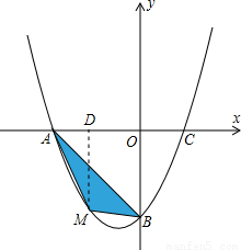 (2)若點M為第三象限內拋物線上一動點,點M的橫坐標為m,△AMB的面積為S、求S關于m的函數(shù)關系式,并求出S的最大值.