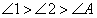 如圖,點P是△ABC內(nèi)一點,連結(jié)BP并延長交AC于D,連結(jié)PC,把∠1,∠2,∠A從大到小排列為(    )。