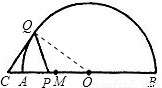 (2003•吉林)如圖,AB是半圓O的直徑,點(diǎn)M是半徑OA的中點(diǎn),點(diǎn)P在線段AM上運(yùn)動(dòng)(不與點(diǎn)M重合),點(diǎn)Q在半圓O上運(yùn)動(dòng),且總保持PQ=PO,過(guò)點(diǎn)Q作⊙O的切線交BA的延長(zhǎng)線于點(diǎn)C.