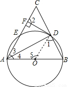 ∴OD∥AC,∴∠2=∠FDO.                               (3分)