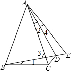 分析:首先根據(jù)等邊三角形的性質(zhì)得出AE=AB=AC,以及∠1=∠4,再利用外角的性質(zhì)得出∠1=∠2,進(jìn)而得出∠2=∠4,即可得出△ACD≌△AED,從而得出答案.
