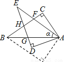 如圖,Rt△ABC中,∠C=90°,將△ABC沿AB向下翻折后,再繞點A按順時針方向旋轉α度(α<∠BAC),得到Rt△ADE,其中斜邊AE交BC于點F,直角邊DE分別交AB、BC于點G、H.