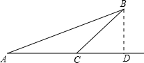 如圖:一只船以每小時(shí)20千米的速度向正東航行,起初船在A處看見(jiàn)一燈塔B在船的北偏東60°,2小時(shí)后,船在C處看見(jiàn)這個(gè)燈塔在船的北偏東45°,則燈塔B到船的航海線AC的距離是 [ ]千米.