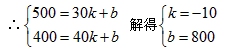 | 銷售單價x(元/件) | … | 30 | 40 | 50 | 60 | … |