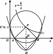 ∴DH=k2-1. 若四邊形ADBP為菱形.則必有PH=DH 10分 ∵PH=1,∴k2-1=1. 又∵k>1,∴k= ∴當(dāng)k取 |