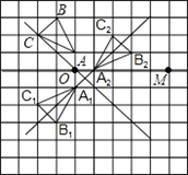 如圖,方格紙中的每個(gè)小正方格都是邊長為1個(gè)單位長度的正方形,每個(gè)小正方形的頂點(diǎn)叫格點(diǎn),△ABC的頂點(diǎn)均在格點(diǎn)上,O、M都在格點(diǎn)上.