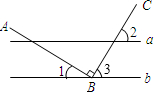 如圖所示,直線a∥b,點(diǎn)B在直線b上,且AB⊥BC,∠2=54°,則∠1=