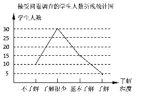 【小題2】請補全折線統(tǒng)計圖,并求出扇形統(tǒng)計圖中“基本了解”部分所對應扇形的圓心角的大。