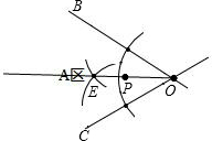 分析:先作出兩條交叉公路OB、OC的角平分線OE,設(shè)目標到交叉處O的圖上距離為x厘米,根據(jù)比例尺建立方程求出其解就可以求得OP的長度,就可以確定位置.