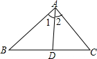 分析:根據(jù)題意畫出圖形,由AD是∠BAC的平分線可知∠1=∠2,再根據(jù)三角形外角的性質(zhì)可求出∠1的度數(shù),進(jìn)而可求出∠BAC的度數(shù).