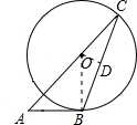 如圖,AB與⊙O相切于點B,AO的延長線交⊙O于點C,連結BC.