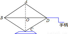 (本小題滿分6分)一種千斤頂利用了四邊形的不穩(wěn)定性. 如圖,其基本形狀是一個菱形,中間通過螺桿連接,轉(zhuǎn)動手柄可改變