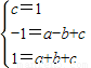 ∵點(diǎn)D、M、N在拋物線上,將D(0,1)、M(-1,-1)、N(1,1)的坐標(biāo)代入y=ax2+bx+c,