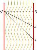 【答案】分析:河寬就是點(diǎn)C到AB的距離,因此過(guò)點(diǎn)C作CD⊥AB,垂足為D,根據(jù)AB=AD-BD=20,通過(guò)解兩個(gè)直角三角形分別表示AD、BD的方程求解.