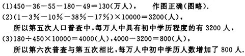 (1)計(jì)算第六次人口普查小學(xué)學(xué)歷的人數(shù),并把條形統(tǒng)計(jì)圖補(bǔ)充完整;