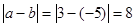 已知│a│=3,│b│=5,a與b異號,求│a-b│的值。