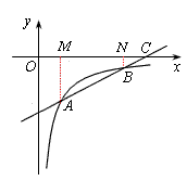 | (2)∵點(diǎn)A(2,-4)在函數(shù) ∴ 解得m=6, 過點(diǎn)A、B分別作AM⊥OC于點(diǎn)M,BN⊥OC于點(diǎn)N, ∴∠BNC=∠AMC=90°, 又∵∠BCN=∠ACM, ∵△BCN∽△ACM, ∴ ∵ ∴ 即 ∵AM=4, ∴BN=1, ∴點(diǎn)B的縱坐標(biāo)是-1, ∵點(diǎn)B在反比例函數(shù) ∴當(dāng) ∴點(diǎn)B的坐標(biāo)是(8,-1), ∵一次函數(shù) ∴ 解得 ∴一次函數(shù)的解析式是 |