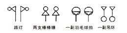 23、請(qǐng)你以給定的圖形(兩個(gè)圈、兩個(gè)三角形、兩條平行線(xiàn)段)為構(gòu)件,構(gòu)思獨(dú)特且有意義的圖形,并寫(xiě)上一兩句貼切、詼諧的解說(shuō)詞.(至少設(shè)計(jì)三幅).