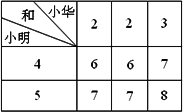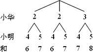 小華有3張卡片,小明有2張卡片,卡片上的數(shù)字如圖所示.小華和小明分別從