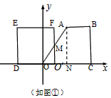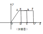 如圖,在平面直角坐標(biāo)系中,直角梯形ABCO的邊OC落在x軸的正半軸上,且AB∥OC,BC⊥OC,AB=2,BC=3,OC=4,正方形ODEF的兩邊分別落在坐標(biāo)軸上,且它的面積等于直角梯形ABCO面積。將正方形ODEF沿x軸的正半軸平行移動(dòng),設(shè)它與直角梯形ABCO的重疊部分面積為S。