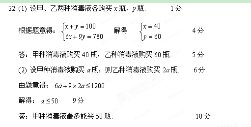 | 甲種消毒液(瓶) | 乙種消毒液(瓶) | 總費(fèi)用(元) | |