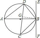 分析:(1)先由AB是⊙O的直徑可得出∠ADB=90°,再根據(jù)∠ADC=∠ABC,∠CBF=∠CDB即可得出∠ABF=90°,故EF是⊙O的切線;